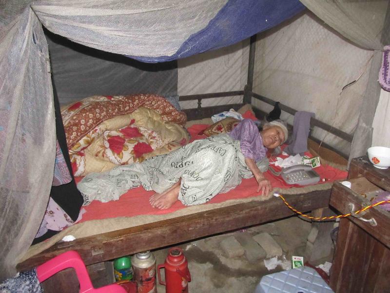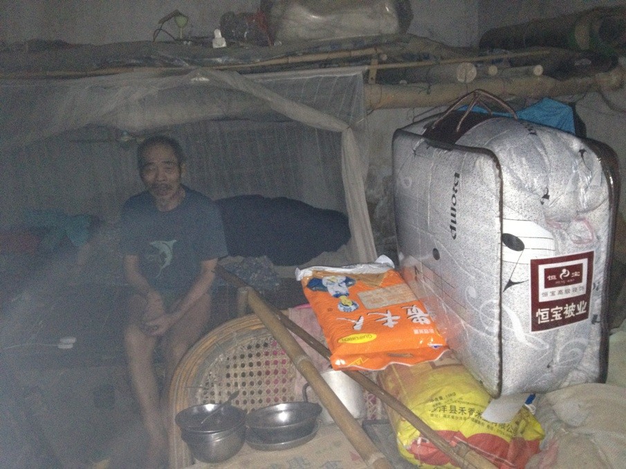 3、李*耀 男,75岁,旦场低山村人。妻子和儿子智障,女儿出嫁多年不曾回家。之前住的泥砖房子已经倒塌,现用塑料布搭起一个简陋的“家”住。义工代爱心人士转交200元慰问金。