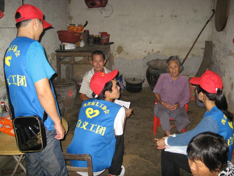 在社会各界的关注下,在众多爱心人士的帮助与支持下,电白义工团“爱在冬日,情暖空巢”活动于2012年11月10、17日于电白县水东,旦场,树仔,林头,霞洞,沙琅、观珠等镇顺利展开。