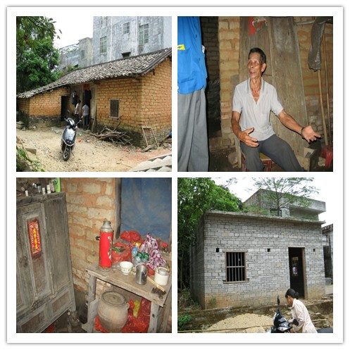 35、 杨*新,1949年3月18日,63岁,地址:沙琅镇渡头村委会下富地岗村,五保户,探访时不在家,妻子在家。村干部介绍说其脚有残疾,娶一外地哑女为妻,无生育,无耕作能力,两人能力有限,行动不便,靠政府补贴维持生计。