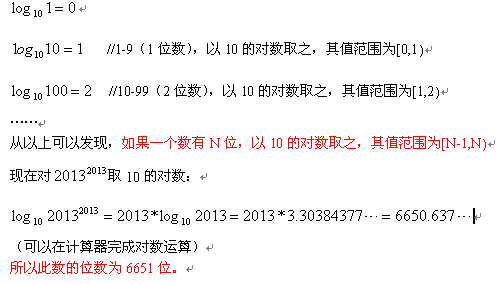 用二次项定理展开,如果给我时间,我可以算出是多少位数(仅用纸和笔),我却无法仅用纸和笔算出lg2013,仅知道大于3,小于4!