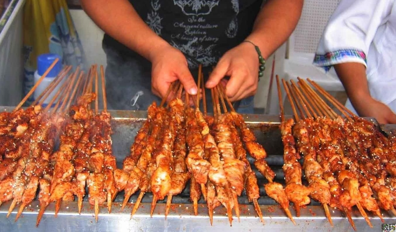 新疆的烤羊肉、烤馕、抓饭。