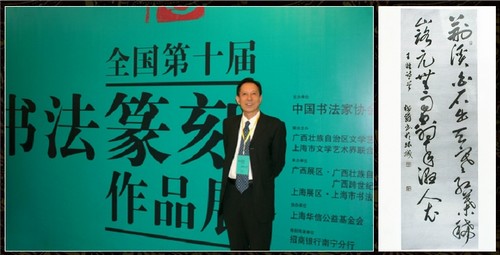 酒圣 荣誉会员 荣誉会员 注册 2011-11-01 消息 7,122 反馈评分 134 点数 101 2013-02-18 #6 李梅舞自幼酷爱书法艺术,数十年如一日,笔耕不止,上追晋唐,下探明清。以米芾、王锋行草为宗,钟情张旭、怀素狂草,参与二王精髓,取诸家之长,以狂草为面目,作品大气爽朗,自成风格。其刻字则强调表现探索书法与建筑的完美结合,追求两者的完整性和统一性。 附件 2012010411531696.jpg 42.2 KB · 查看: 301