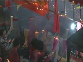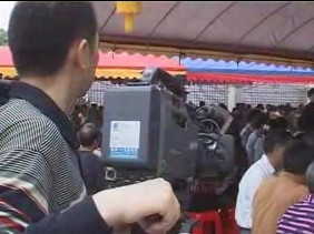 中央电视台26号在霞洞镇马路头村汉人坡十七把年例上拍摄冼太夫人文化专题