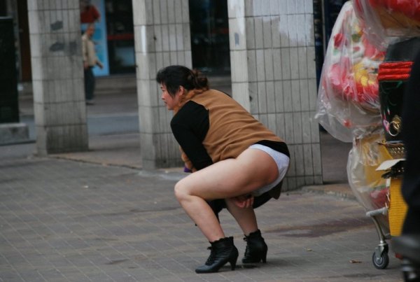 佛山禅城女子当街小便,骑马舞式打的,震惊了路人!