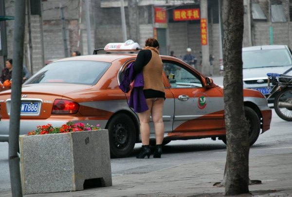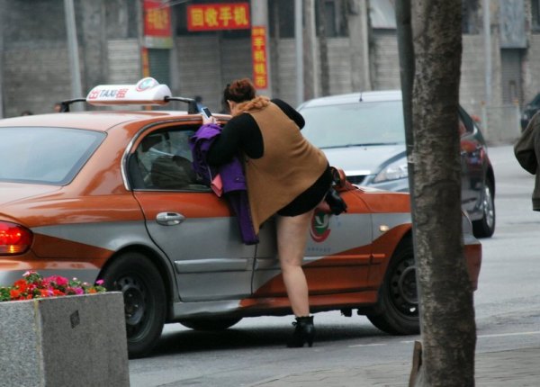 在禅城区升平路,有一个手拿高档手机、衣着光鲜却只穿内裤的女子出现在街上,走到一间文体用品店前小便,不知是否看“骑马舞”看多了,当一辆的士停在她前面时,这名神高马大的露底女竟大条肉腿从打开的车窗伸进去,最后还是司机为她打开了车门。