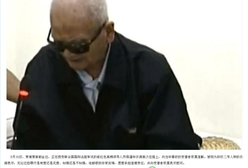 @炎黄春秋编辑部的微博:5月30日,柬埔寨首都金边,耄的老朋友,正在接受联合国国际法庭审讯的前红色高棉领导人乔森潘和农谢首次在庭上,向当年暴政的受害者家属道歉,但仍然企图诿过他人。