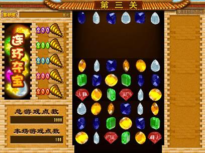 游戏过程共分为三关,三关分别在 4×4,5×5,6×6的方形区域内派发图案,每关图案分为普通图案、过关图案两种。
