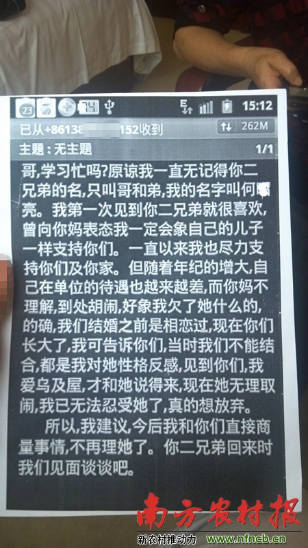 而在李梅提供的一条由何某亮手机发给她两个儿子的短信中,何某亮则说:“我第一次见到你二(两)兄弟就很喜欢,曾向你妈表态我一定会象(像)(对)自己的儿子一样支持你们……今后我和你们直接商量事情……”