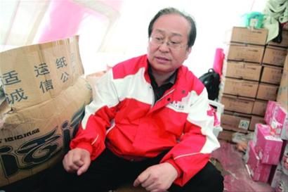 □中国红十字总会赈济救护部部长王平在帐篷里接受采访