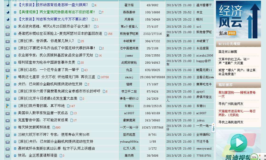 自由主义 教授 注册 2010-03-25 消息 3,421 反馈评分 6 点数 61 2013-06-25 #4 凯迪社区 猫眼看人版块部份截图: [attachmentid=314308] 附件 360截图20130625210240828.jpg 197.6 KB · 查看: 218