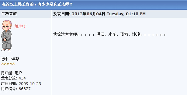 掸子 初中三年级 注册 2006-07-18 消息 518 反馈评分 19 点数 1 2013-08-15 #10 QUOTE(远程南瓜锤 @ 2013年08月14日 Wednesday, 11:45 PM) 楼主出来叼盘子啦,真是好狗, “下一步就挖台湾、美国等国媒体曾经的造假新闻”,什么意思?你干爹造得共党就造不 得? 发个民主之珠的让你开开眼 [attachmentid=316592] [snapback]3573633[/snapback] 谢谢配合,我要的就是你这你这句“你干爹造得共党就造不得?“ 我想问问这是什么时候的旧闻?昨天的?