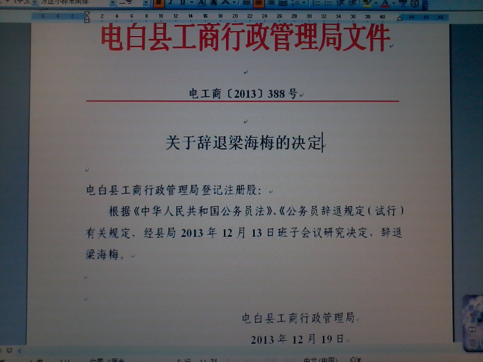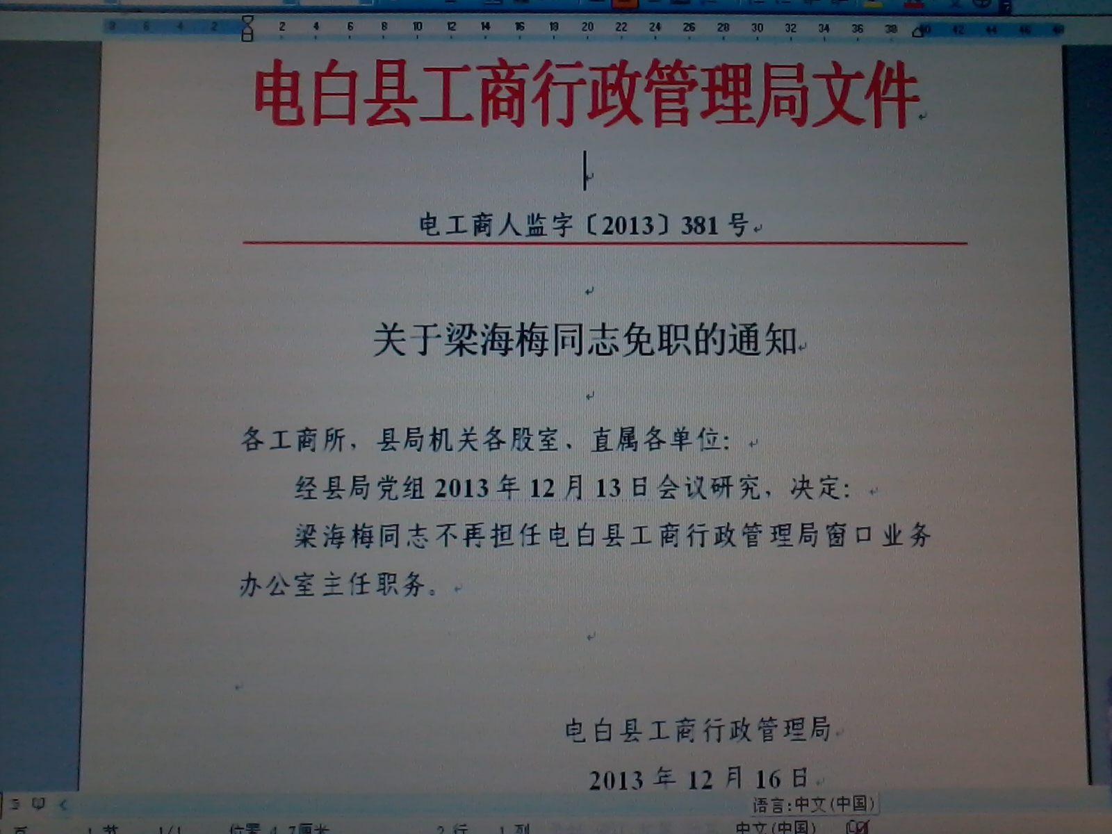 有朋友发来文件,梁主任真的被处理了。