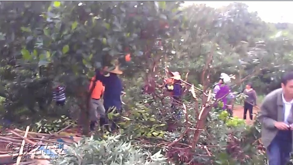 第五次来是2013年3月29日,砍掉荔枝31株,菠萝11株,木瓜6株,黄皮树3株,花生0.5亩,当时刚好挂荔枝果,经济损失2万多元。