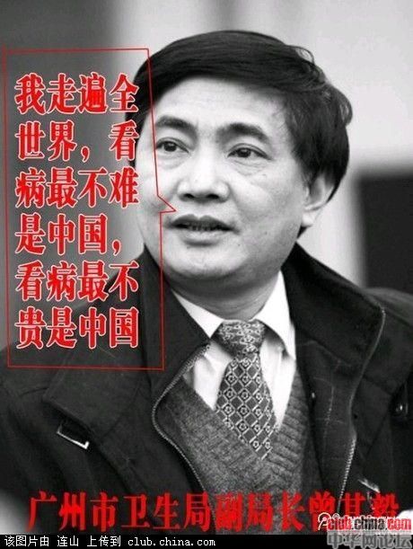 是啊,他这个人民的公仆,在世界任何地方看病都是要钱的,唯在中国是免费的,不要排队的,而且有专门的豪华“病房”,美丽的陪护“护士”,成群的探视“马仔”关心着,每年免费体检呵护着。此公发出这样的感慨不奇怪。。。不管怎么说,我们还是发现了一位敢说真话,不说大话的“好同志”哦。。。。