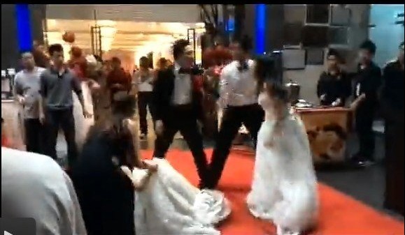2两个“新娘”一见面就大打出手,嘴里不时还冒粗话