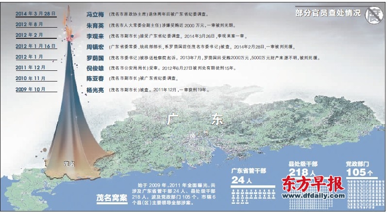 2012年,广东省纪委官方通报,全案共涉及省管干部24人、县处级干部218人,波及党政部门105个,市辖6个县(区)的主要领导全部涉案。其中立案查处61人,属省管干部19人、县处级以下干部42人,移送司法机关依法处理20人。