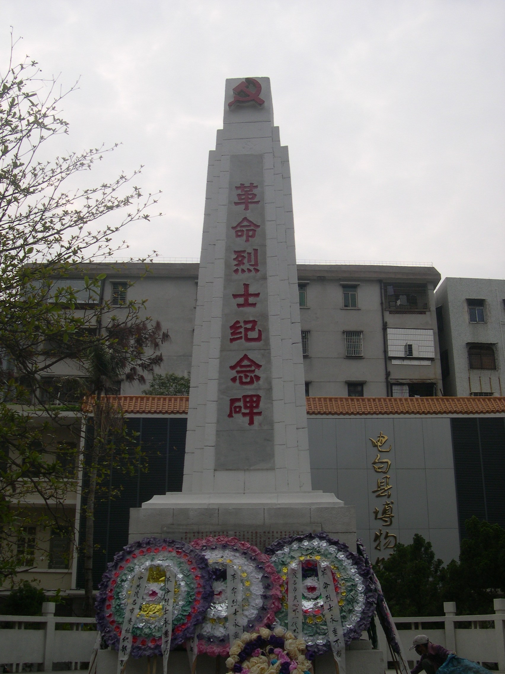 清明节,我到东湖公园“革命烈士纪念碑”,依稀看到,一个星期前,“茂名市中小学生祭扫革命烈士墓活动”曾在这里举行,市委大员陈小锋,电白长黄爽;市、县两级宣传部、教育局、团委、关工委官员以及电白县老游击战士联谊会、电白中小学师生代表参加祭扫,窃认为,这是一个很好的活动,但愿 "继承先烈遗志,弘扬英雄精神"能成为中小学思想教育的主旋律。