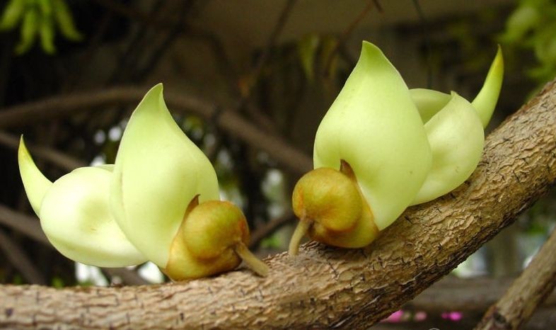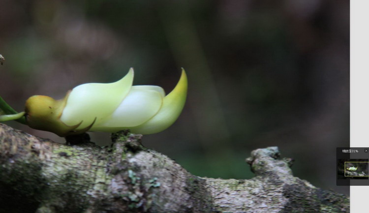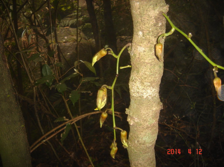 禾雀花,学名白花油麻藤,属蝶形花科,是中国国家二类保护植物。禾雀花外形奇特,花开四(五)瓣,花托似禾雀头,两旁各有一粒似眼睛的小黑点,正中的一瓣,弯弓似雀背,两侧的花瓣似雀翼,底瓣后伸,是为尾巴,花内有一撮细长略弯的花蕊,人们称之为“禾雀内脏”。禾雀花初开时为翡翠绿色,盛开时为柠檬黄色,非常漂亮。它又有着各种惟妙惟肖的动作造型,且“受伤”时还会“流血”,可谓植物界的奇珍异品。禾雀花开在长长的藤蔓上,吊挂成串,每串二十至三十朵不等,串串下垂,游人远远望去,似是百鸟栖枝,雀跃花香,令人叹为观止。