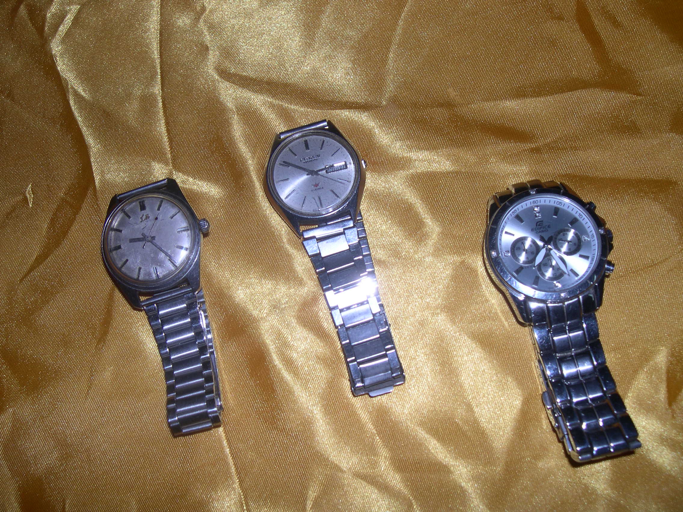 这三个大表,不代表什么生产力,也不代表什么方向,它只是斩柴佬实实在在用过的(右边这个还在用),左边的“东风”牌,购于上世纪70年代末期,现在上足发条还能走;中间的“西铁城”购于上世纪80年代后期,前些年还在用,朋友说太老土了,自此弃之一旁,换上相对“'潮”的“卡西欧”。