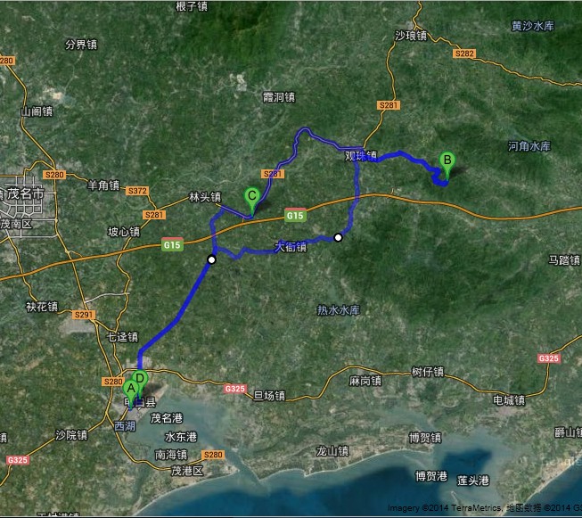 水东出发去返全程约100公里(含爬山探洞),地图B沉香山,C宿车饭店