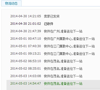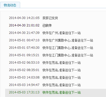 而且后面哪句畜生的“快件在茂名,准备送往下一站”又增加了两句。。。。。。