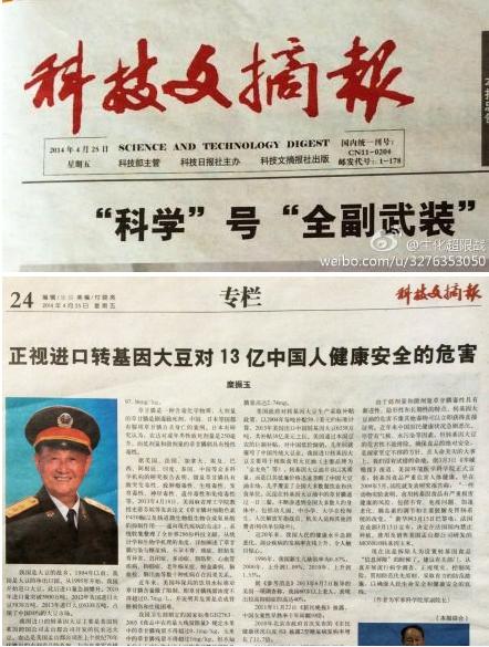 糜振玉中将发文揭转基因危害 竟遭媒体"全面封杀"
