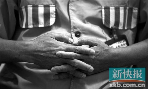 茂名市委原书记职务罪犯罗荫国接受媒体记者采访时,双手一直交叉在一起。
