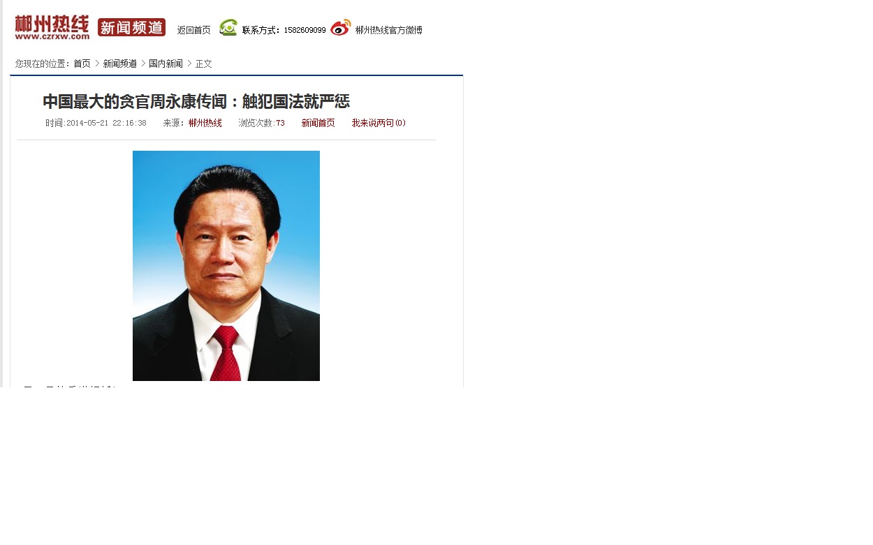 我 我不是强盗 高中一年级 注册 2009-07-30 消息 556 反馈评分 36 点数 11 2014-06-02 #17 四处都有载,看来是真的了!这里也有: http://www.czrxw.com/news/china/106589.html 附件 中国最大的贪官周永康传闻.jpg 85.1 KB · 查看: 322 中国最大的贪官周永康传闻2.jpg 159.8 KB · 查看: 310