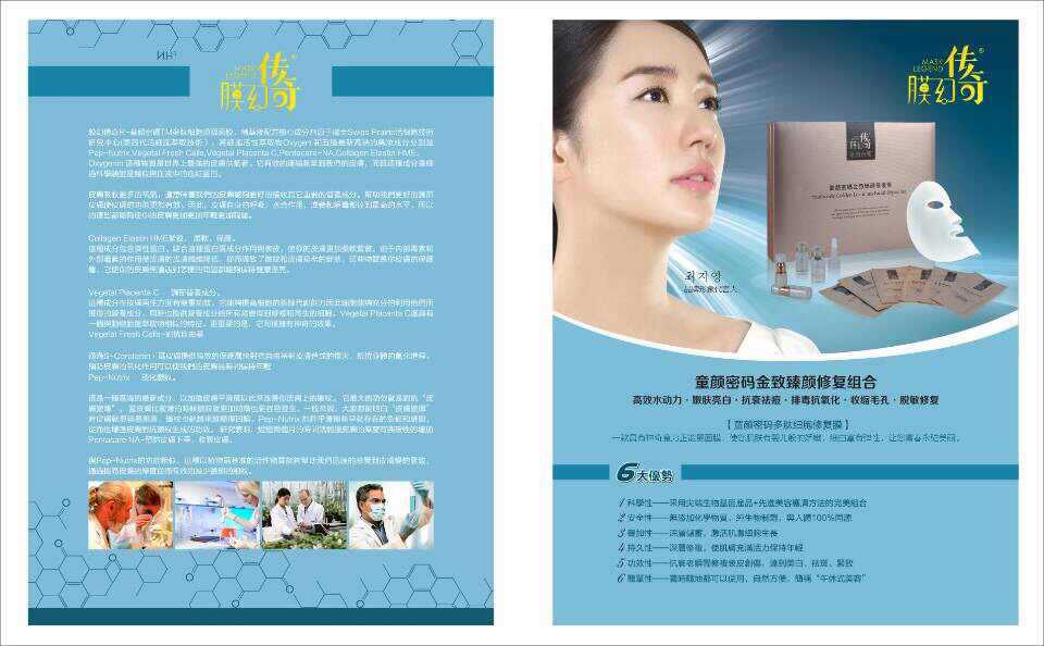 膜幻传奇品牌护肤品开店投资,膜幻传奇将生态美容与科技理念相融合,将法兰西皇室的传统自然养颜理念融入二十一世纪高科技植物萃取技术中,推出一系列化妆品、护肤品、个人护理品等。膜幻传奇品牌护肤品开店投资,公司根据东方人的皮肤特点及构造,运用科学的方法进行系统地研究和分析,推出了相应的美容护肤产品,真正做到植物美容与科技的完美结合。膜幻幻传奇是一款蚕丝多肽蛋白修复面膜,它是由百分百蚕丝羽翼制成,弹力十足,里面含有34种人体所需要的氨基酸和25克细胞生长因子培养液,与身体同源的物质面膜,轻、薄,透,服贴度好,透气性强,会呼吸,不油腻,可免洗,使用后皮肤,水,嫩、白,滑、紧、实、弹、透、修复功能强。