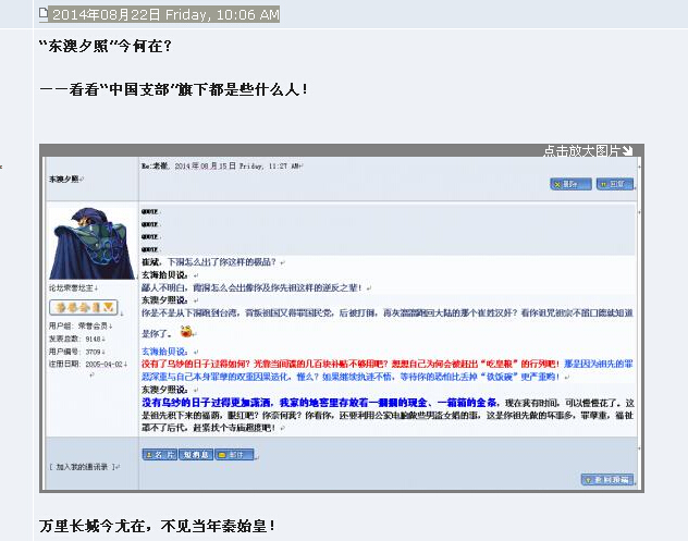 QUOTE(东澳夕照 @ 2014年09月29日 Monday, 09:53 AM) 对付你用得着那么麻烦,抬举自己了吧! [snapback]3702645[/snapback] 按照你的秋林逻辑,鄙人应该很容易对付的了?可是你们怎么一点办法也没有?恐怕连黑客攻击都不奏效吧?一群饭桶!白拿人家的美金了!