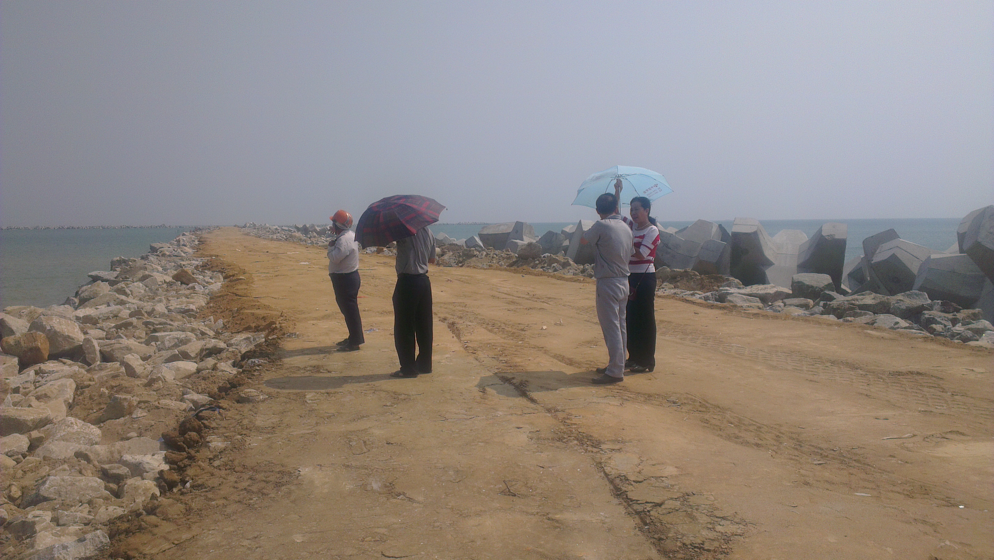 李老板介绍说:防波堤工程是新港区建设的基石,也是港区开发建设的核心所在,是省重点建设项目,分东西两段,东防波堤全长约5423米,西防波堤全长约3315米。工程投资总概算25.8亿元,建安费近18亿元,石料共计1060万立方。该工程于去年12月16日正式动工建设,计划于2016年上半年全部建成。防波堤建成后,能形成环抱式港池面积6平方公里,码头作业面积为11.2平方公里,可建设3~30万吨级液体化工、煤炭矿石、集装箱通用泊位、原油、LNG等各种专业生产性泊位33个。
