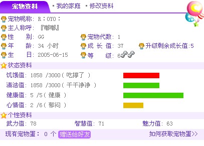 QUOTE(..}菟」 @ 2005年06月15日 Wednesday, 11:42 PM) 在说我吗`???可是`升级要钱的吗???初了电费 [snapback]420804[/snapback] 不是说你 好象升级钱也没用的 也是要挂的 但是不能像挂Q那样一直放在那里不理 如果这样的话宠物分分钟都可能死掉 钱的话就可以升那些武力,智慧和魅力