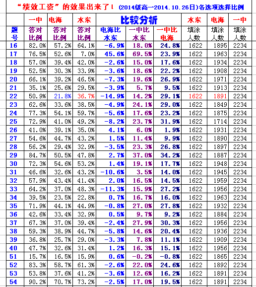 2、 如果你袒护“绩效工资的分配方案”,当然可以认为其中没有关联,可是你能否定这个数据的准确性?如果数据跟“绩效工资”没有任何的联系,那么请问,其中的问题出在哪个地方?还请不吝赐教。