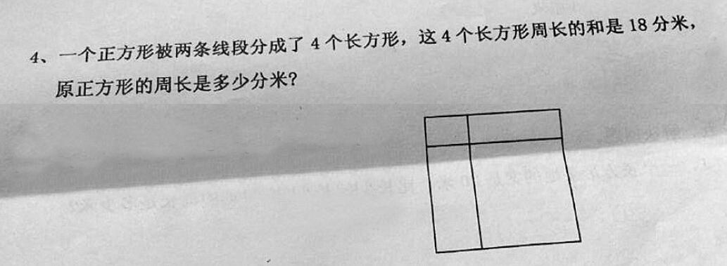 此题发生争吵的关键是“周长的和”?长方形的周长是由四条线段组成的封闭图形,四个长方形的周长有16条线段,少于16条是错的,因此9是正确的答案。