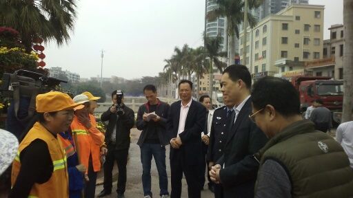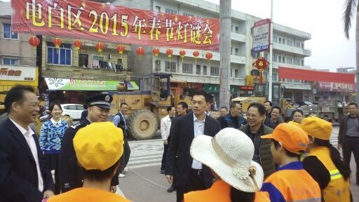 大年三十上午九时许,茂名市委常委、电白区委书记刘小涛及副区长龙木兴同志在区城管局领导班子的陪同下,慰问了城区环卫工人代表。他对近来城区环境卫生工作所取得的成效表示满意,代表区委、区政府对城区环卫工人的辛勤劳动表示感谢,对全区环卫工人给予节日问侯。同时,也肯定了区城管局、水东镇、陈村镇、区公安分局、区交警大队等部门为城区提供良好环境卫生、交通秩序所做的努力,对仍然战斗在第一线的全区各战线、各部门的工作人员表示感谢。