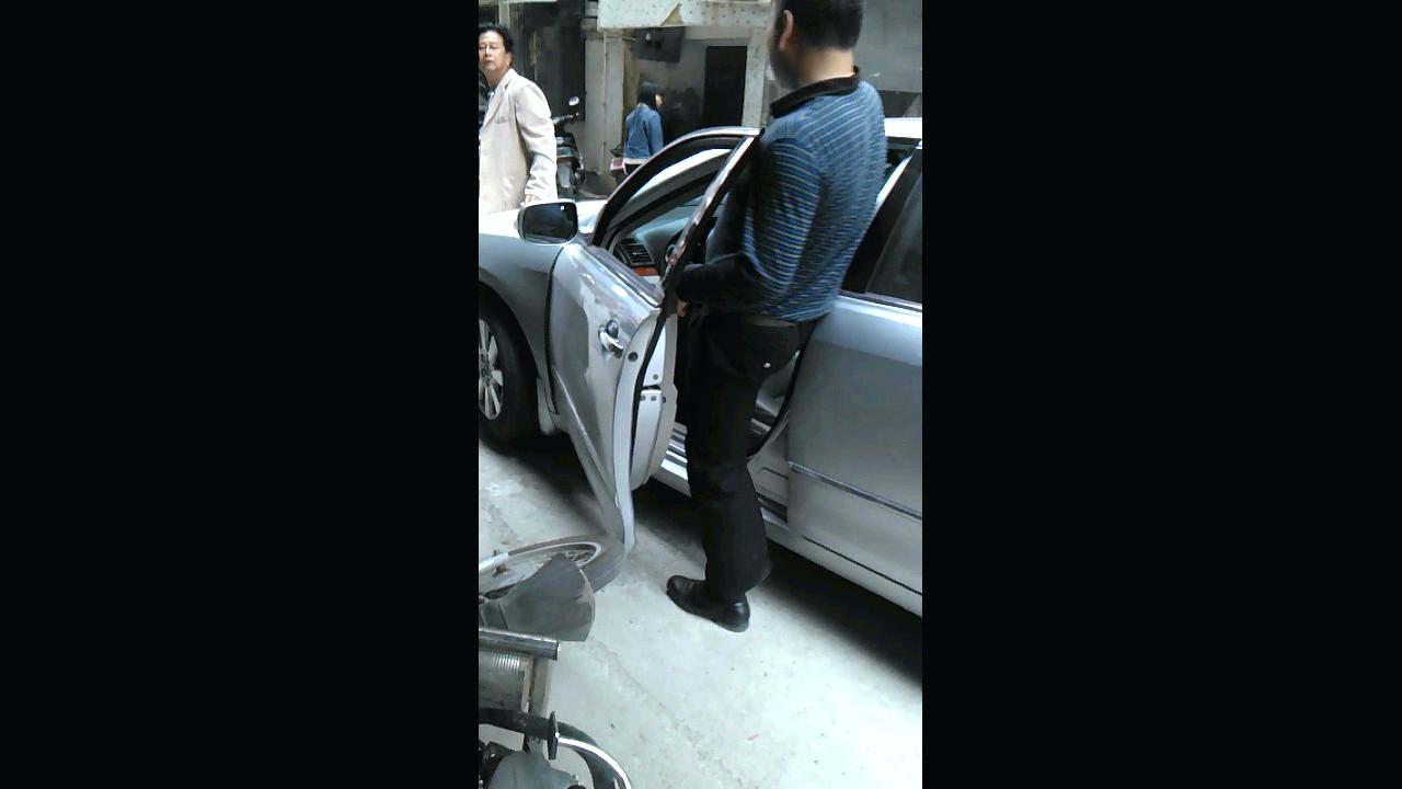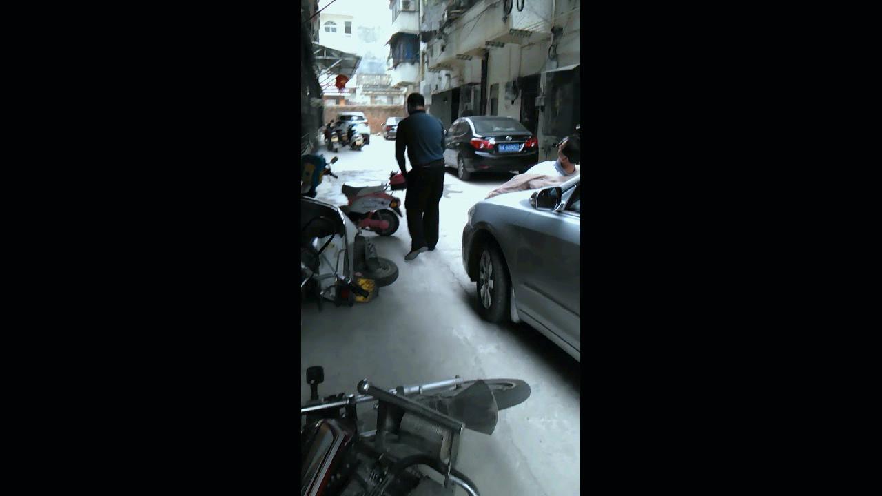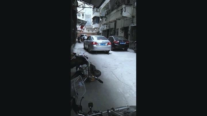 在一个住宅楼的断头路巷路上,多幅图片上看到,好像车没有行驶或移动,而在原地不动?