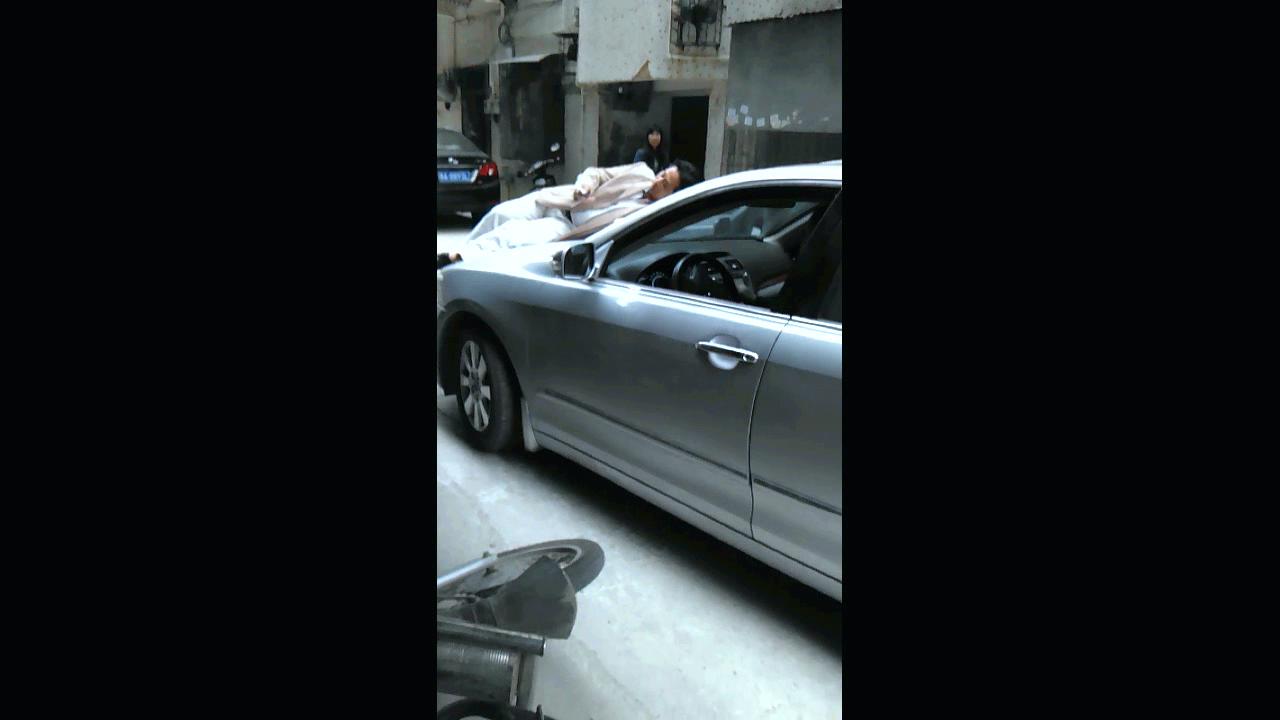 看了视频,车头盖上的那位阿叔,自己爬上去睡在上面,这是拿生命在碰瓷吗?
