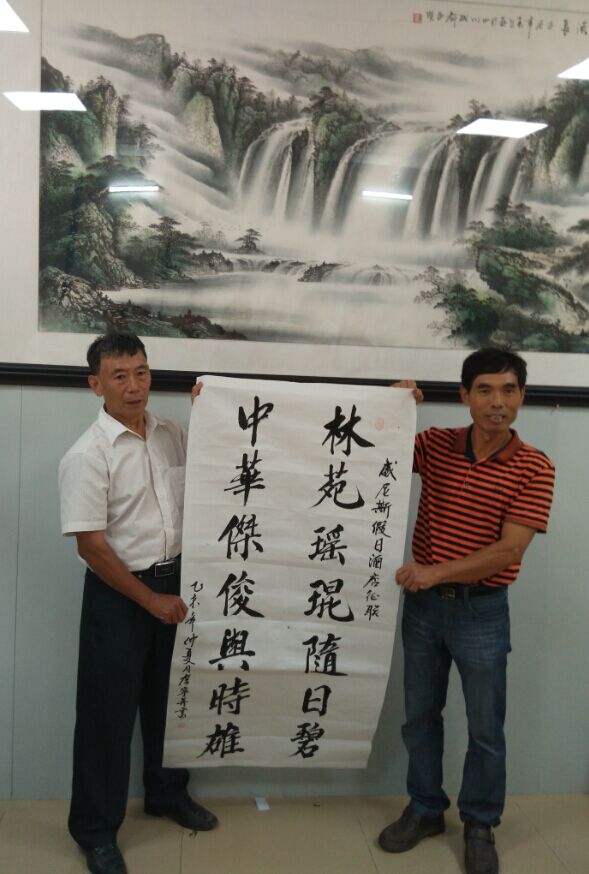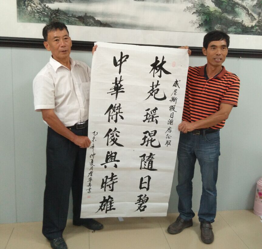 湖海山人 荣誉会员 荣誉会员 注册 2006-09-25 消息 25,094 反馈评分 766 点数 191 2015-06-29 #32 为庆祝威尼斯假日酒店征联的圆满成功,树仔以树仔镇为主的联友们昨日中午在树仔镇首骏渔村召开庆祝会。树仔镇的文化名人邓英臣、邵其仙,博贺的李伟立、杨志远,麻岗的邵森等超过十七位文友欢聚一堂,电白区文联的陈姐到场指导工作。 会议在热烈的掌声中开幕,湖海山人首先代表征联方给获奖者代表、一等奖获得者詹宁颁发树仔片的奖金1300元,这意味着本次奖金的发放工作全部完成。 电城古楼诗社的杨先生当场吟七律诗一首,祝贺詹宁技压群雄,博得掌声满堂。邓英臣先生也乘兴以清朗的声音将这首诗再次吟唱。 被大家的热情氛围所感,“状元”詹宁作诗一首回应。 会议上,大家谈笑风生,邓英臣先生时而吟诗作对,时而高歌一曲,他儒雅的言笑将会议气氛步步推向高潮。 杨先生即席挥毫,隶书“惠风和畅”令大家赞不绝口,卓先生大笔一挥,写下“群贤毕至”四字呼应。 应大家的要求,詹宁先生用刚劲的笔力写下他的获奖楹联“林苑瑶琨随日碧;中华俊杰与时雄”,并盖上自己的名章与闲章,山人笑他有备而来如唐伯虎:“吃饭的家伙一日不可离也!” 至下午近三时山人离开时,文友们雅兴未尽,还在翰墨怡情,诗书快意。估计现在还吟诗作对。