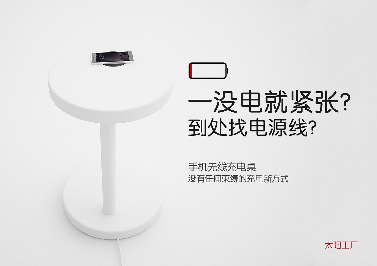 太阳工厂新推出无线充电桌系列产品,采用电磁感应原理,将无线充电套件与桌面结合,让手机充电不需要任何线。