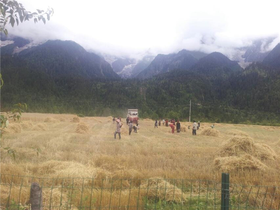 骑行西藏,第25天,然乌――波密,130km,骑行以来最爽的一天,还是看老样子,早上睡到自然醒,吃过早饭,去然乌湖环绕了一下,挺美的,今天路况一路平川,沿着一条江(好像是雅鲁藏布江),听着流水的声音…放着“海阔天空,不再犹豫,明天你好”…路上看到藏民在收割青稞(昨晚刚刚喝了青稞酒),也看到藏民在保护毛毛虫(好惊讶)…一些旅游西藏的叔叔阿姨在明拍我们………一路到了波密…不过波密住宿好贵…好贵…