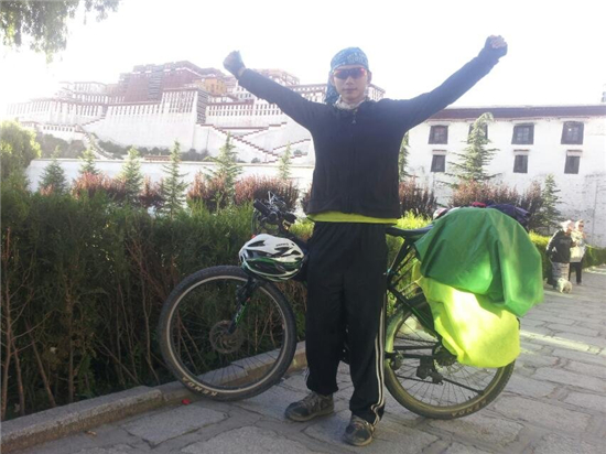 骑行西藏(7月6号到8月5,将近2500km,请为我点个赞),今天是最后一天,我到拉萨了,我现在在布达拉宫面前,今日翻越了最高峰――米拉山(海拔5013),一路狂飙186公里,来到了布达拉宫,刚刚到时,眼泪忍不住流下来了,将近2500公里,一辆不到500的破车,一辆大家都觉得骑不到拉萨的破车,我照样骑过来了,我照样骑过来了,,,
