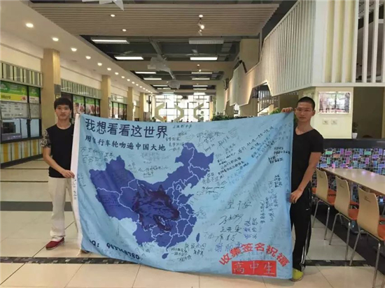 单车中国,第三次试骑,也是最后一次试骑!一路经过同学朋友的家,收集他们的签名和祝福。“一路平安”是你们最大的祝福,但我更喜欢的祝福是“我们相信你会平安归来”。很喜欢阿毛送的那句话“有些人的梦想是说说而已,而你不一样,兄弟,祝福你”…你们的祝福,我会带着它走遍中国,当我在路上孤独,无助,迷茫时,带给我动力的就是你们的祝福! 离高考还有37天,我会把握住最后的时间,还是那句话,只待六月,金榜题名,辉煌上路!单车中国,6.11起航