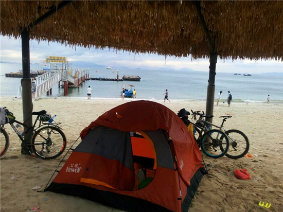 昨晚偏离“路线”16公里,和两个“逗比”骑友―小敏姐和建琼哥,骑到12点,就为来这里搭帐篷…昨日真的挺开心的,他们算是我认识的第一批骑友,而且昨日又同路……可惜今日又分别了,再见,广东警官学院的两位学姐学长…
