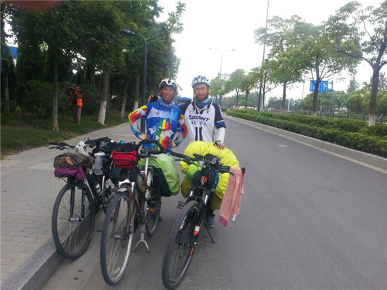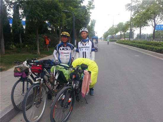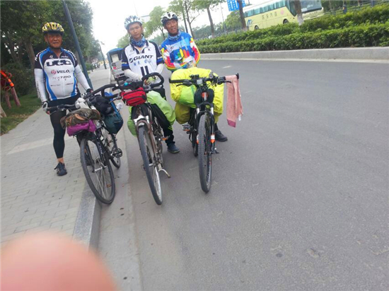 清晨时分,遇到两个“西安骑友”,两位退休的老伯,一起骑了30多公里,到了连云港,就分道扬镳了