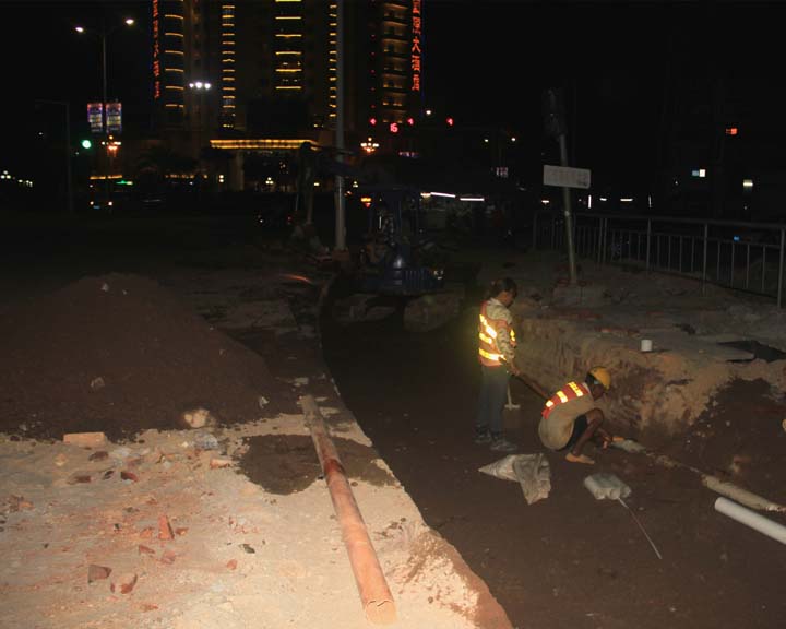 施工方表示,他们正在加紧工程施工,日夜加班加点,预计8月底三角圩至水东加油站路段能铺设完毕。