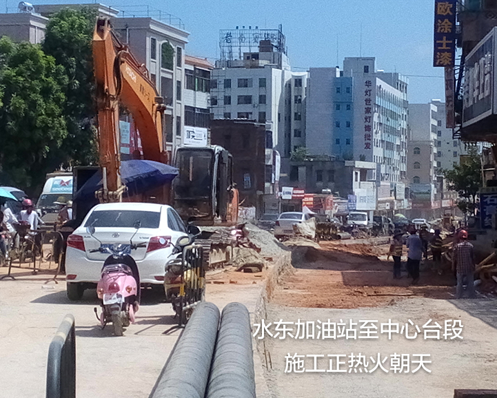 造成很大不便。在水东加油站至中心台段,大量的机械设备和施工人员