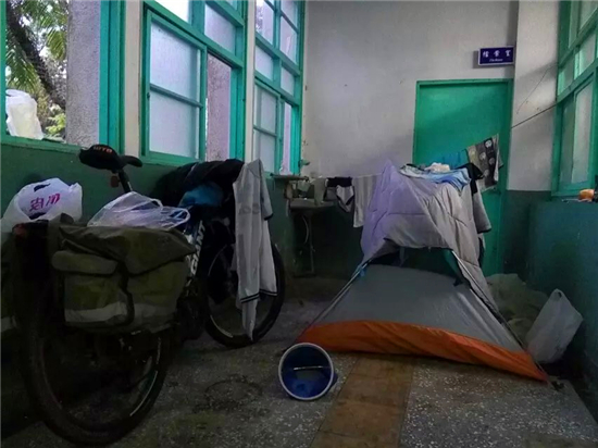 今天比较早到目的地―礁溪。在礁溪国民中学搭帐篷。校长爽快地答应了,门卫腾出一块地方,还把他的浴室借给我,教务主任送来一个苹果和猕猴桃。
