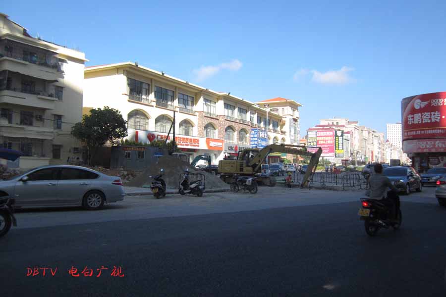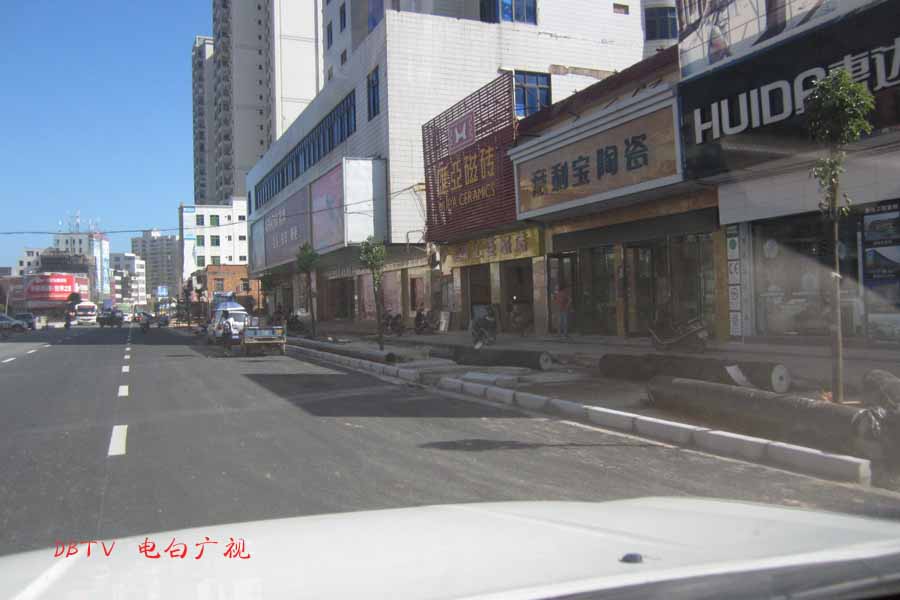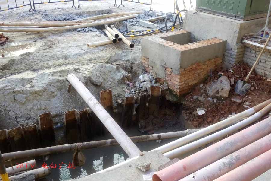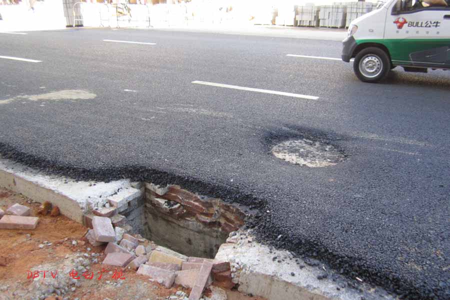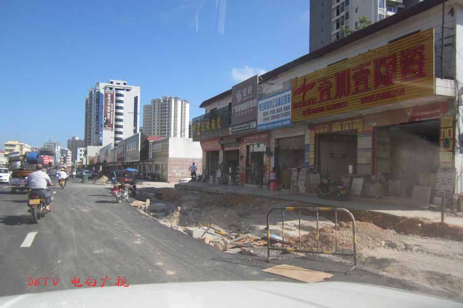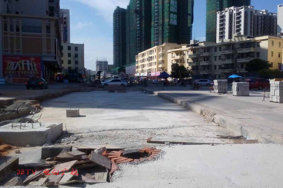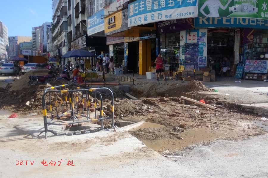 目前的主要施工集中在水东加油站到中心台段,只见人行道被挖开,铺设自来水管道。