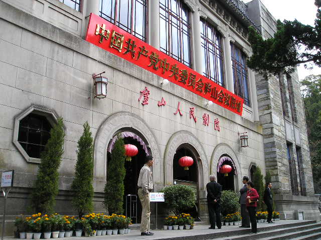 图为庐山南门游客服务(换乘)中心,游客到此换乘景区的环保汽车上山,从南门上山36公里,三百多个弯弯,行程四十分钟左右