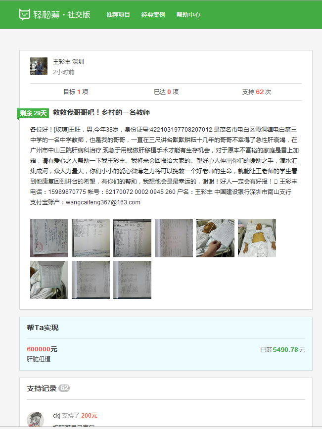 建议将教育局出具相关证明材料上传,通过微信圈发布,争取更多人帮助,好人好报!